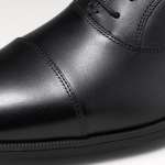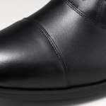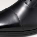 ▲質感の良いやわらかな牛革を使用。シューズの顔であるつま先とかかと部には磨きをかけ、光沢感をプラスして上品に仕上げている