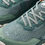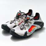 広めに設計された前足部や通気性の高いニットのアッパーなど開放感のある1足。サンダルのような使い勝手に加え、トレッキングシューズのようなグリップ力と保護性能、さらにスニーカーのようなクッション性を併せ持ったユニークなアイテムだ。