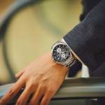 ▲2012年にデビューしたアストロン「SAST003」をつける古城氏。47mmのケース径を感じさせないスタイリッシュなデザインだ