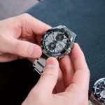 新型モデルを語るうえで欠かせないのが、アストロン初となるデュアルタイム・クロノグラフを搭載した新型キャリバーの存在だ。「キャリバーは設計との対話を重ねながら、徐々に仕様を決めていきました」そう語るのは、ウオッチデザインを担当する伊東氏。