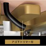▲最薄部0.041mmという4枚の「新・極薄深剃り刃」で、肌への負担を最小限に肌面より深くまでヒゲをカット。また、配列を変えて刃穴のカバー範囲を拡大したことにより、深剃り刃1枚あたりのカット効率がアップした。剃り残しやすいアゴ下のくせヒゲは、2枚の「アゴ下トリマー刃」で逃さずカット