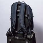 通常はウエスト部分に装着されているストラップを、ボディ上側のループにカラビナを用いてかけることで、スーツケースを固定するキャリーオンストラップに変身。なるべく身軽でいたい旅先での移動時に効果を発揮するギミックだ。