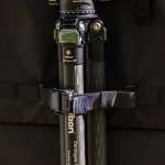 バックパックはフレームが内蔵されているため、横にしても本体の形状をキープしたまま装着可能。三脚はサイドに固定した方が、安定性は増す。