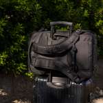 機材を入れた状態でキャリーケースの上に乗せられるので、安心感も高い。
