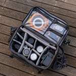 「普段アウトドア用のバックパックを背負うので26リットルと聞いて、ちょうどいいサイズかなと思いましたが、数値からは想像できないほどの大容量サイズですね。何があっても対応できるほどの機材が全部入ります」