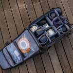 ショルダーバッグにも同様の機材が入っているが、こちらはレンズを外した状態で収納。ディバイダーをアレンジすれば、70-200mmの大口径レンズをつけたまま収納もできる。また、レイアウト次第では動画撮影用のジンバルやドローンなど、さまざまな機材を収納できるのがショルダーバッグの特徴といえる。