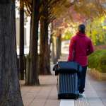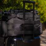 「キャリーに乗せての移動は、ショルダーバッグの方が安定感はあります。とはいえバックパックも装着できるのは、移動の時に重宝します。大型のため、横での装着になりますが、キャリーオンホルダーもしっかりしているし、サイドハンドルもあり実用的です」