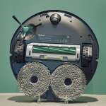 ▲大判で厚手のモップパッドは、いかにもパワフル。床面の状況にもよるが、これまでの全てのモデルの中で最大の拭き掃除能力を持つという。じゅうたんやラグを検知すると、モップを1cmほど浮かせて汚れを回避する機能も備える