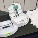 ▲中央が「Combo 205」のダストボックス。緑色のパーツが左右に動くことでゴミを圧縮。右にある綿がすべて収まりきるという