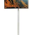 ▲付属のスタンドは高さ調整やローラー移動が可能。またスタンドにバッテリーを内蔵しているので電源への接続も不要。視聴場所を選ばない