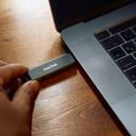 そう言ってガジェットポーチから「SanDisk Slim Dual Drive ポータブルSSD 2TB」を取り出し、山口に渡しました。見た目はもちろんですが、長さ18.4mm×幅80mm×厚さ10.7mmというサイズ感からも、USBメモリにしか見えません。