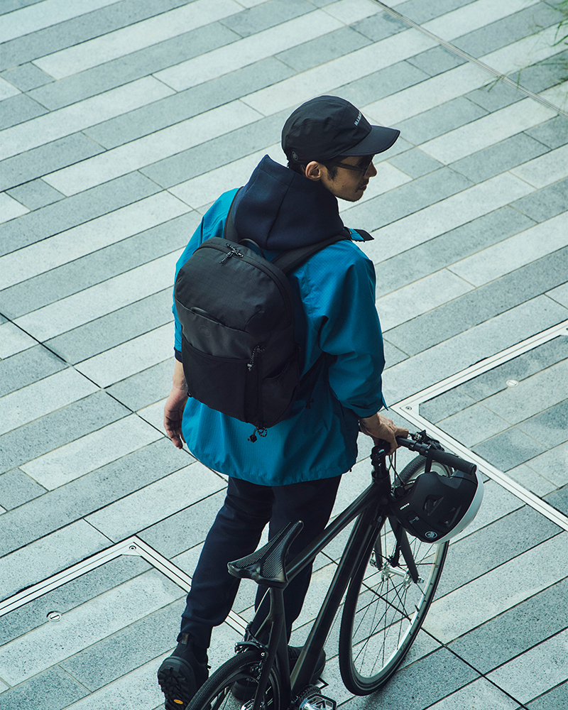 加えて、伸縮性のあるフロントメッシュポケットは、本格登山や自転車通勤でのヘルメット収納にも対応。