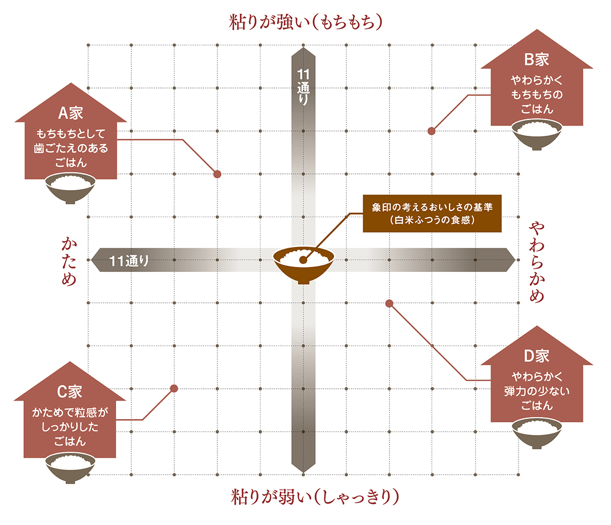 今年話題になった備蓄米に代表される古米や輸入米に各種銘柄米も、11段階の「粘りの強さ」と11段階の「かたさ」を組み合わせることで“わが家好み”の炊き加減が見つかる。