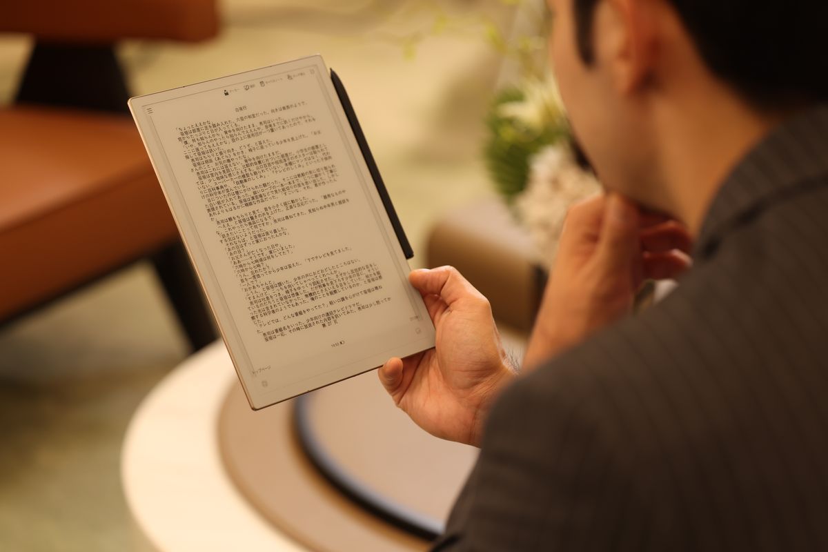画面はE-Ink。電子書籍用端末とかに使われているアレですね。目が疲れにくくて、消費電力が少ない。しかも4000mAhという大容量バッテリーを搭載しているので、長時間使えます。