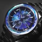 特筆すべきは、文字板とベゼルそれぞれに構造色フィルムを配し、硬質なサファイアガラス1枚で覆う新設計を採用した点だ。従来は別々だった要素を一体化させることで、これまでにない奥行きと立体感が生まれている。