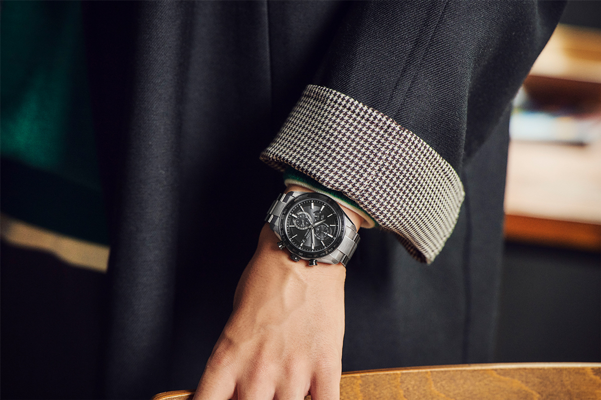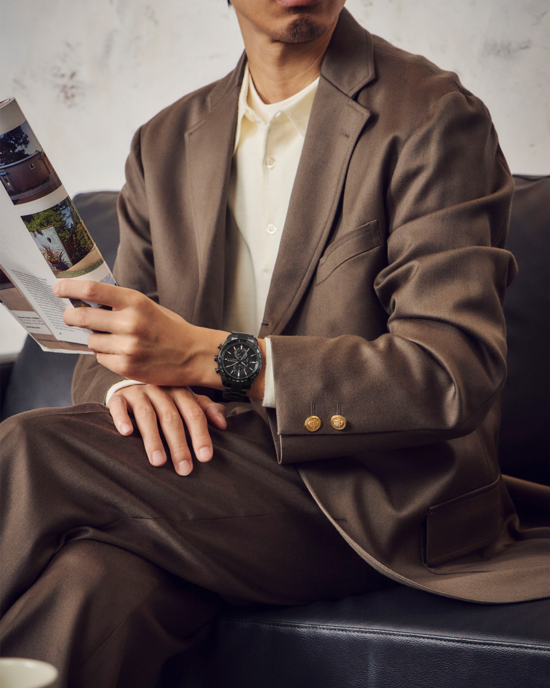 その佇まいは、ビジネスシーンでは腕元を引き締め、カジュアルな装いでは全体をスマートにまとめ上げる万能性へとつながっている。