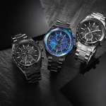 幻想的な構造色をまとい、新構造の一体型ベゼルでその魅力を際立たせた「AT8314-53L」。さらに、精悍なブラックと完成度の高いシルバーというレギュラーモデルも揃い、3本それぞれが異なる個性を放っている。