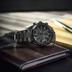 ケースからブレスレットまでをブラックで統一した「AT8294-59E」。強靭なチタニウムにデュラテクトDLC加工を施すことで、優れた耐傷性と深みのあるブラックを実現した精悍なモデルだ。
