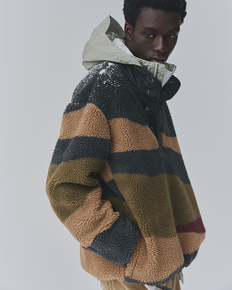 そして、中でも注目は今季トレンドのバラクラバ(フード)。3/4ジップで着脱しやすく、ドローストリングでフィット調整も自在。マフラーとはひと味違う立体的なフォルムが顔まわりを包み、コートの襟元からのぞかせれば差し色としても機能するだろう。