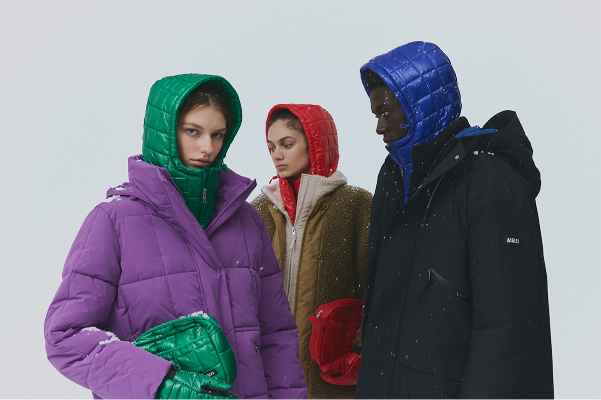 どんな天候にも対応できる機能性はもちろん、エーグルの魅力は色やデザインの豊かさにもある。つい黒やネイビーを選びがちな冬の装いも、鮮やかなカラーを取り入れれば気分まで軽やかにしてくれる。