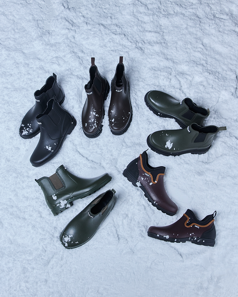 先述の通り、エーグルのものづくりを語るうえで欠かせないのが、ラバーブーツの存在だ。創業当初から受け継がれる確かな防水技術と、時代に合わせて磨かれてきたデザイン性。