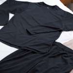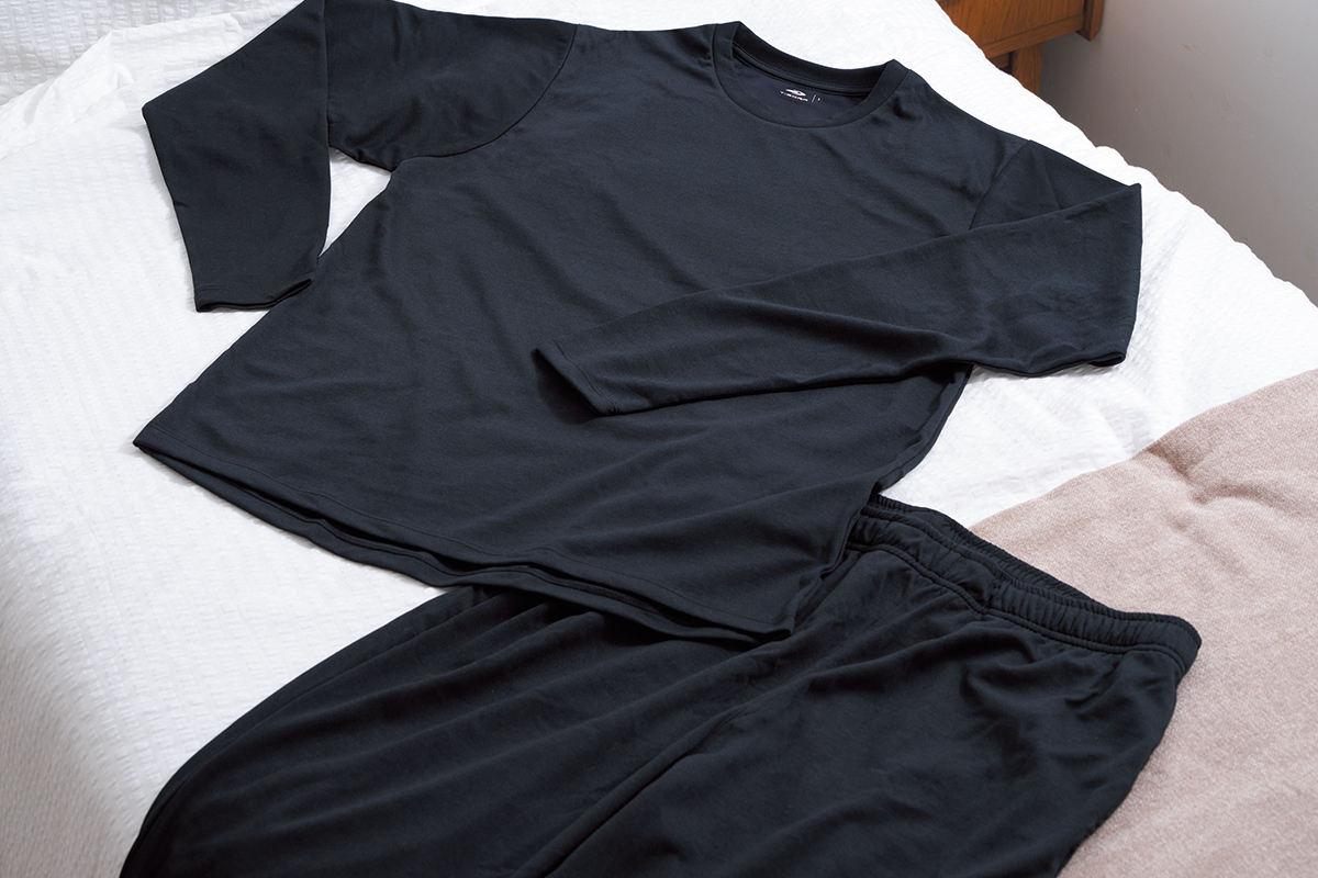 ▲ウエアに使用されている生地は柔らかく伸縮性も十分。寝る前のストレッチや就寝時の寝返りもしやすく、窮屈さを感じることなくリラックスできる