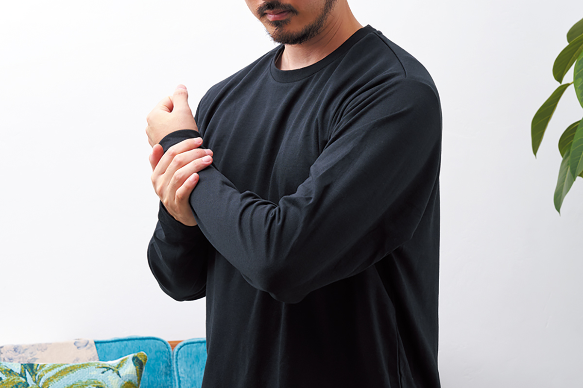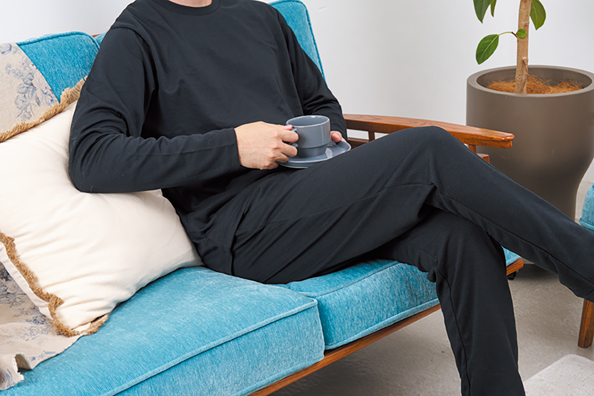 ▲着るだけで疲労軽減できるので就寝時はもちろん部屋でくつろいでいるだけでも効果を発揮。ゆとりのあるシルエットはルームウエアとしてもおすすめ!