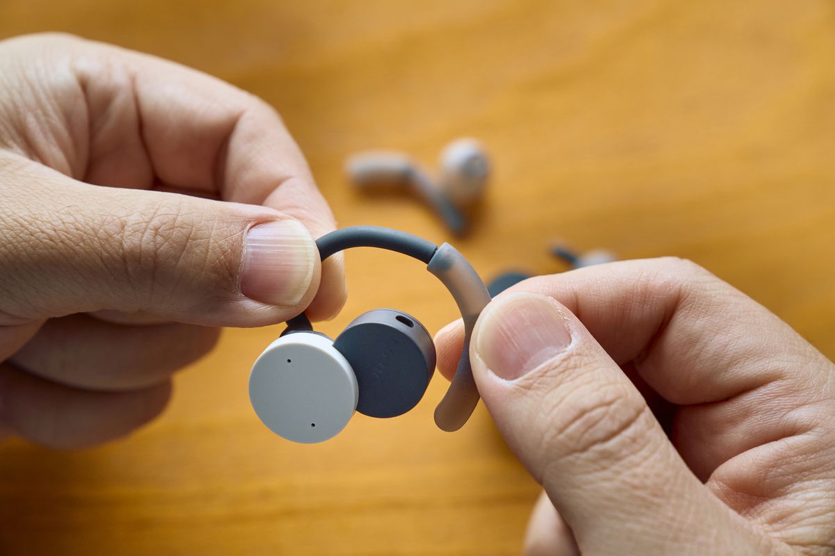 お次は出勤時にイヤーフック型イヤホン「nwm DOTS」(2万4200円)をお試し。