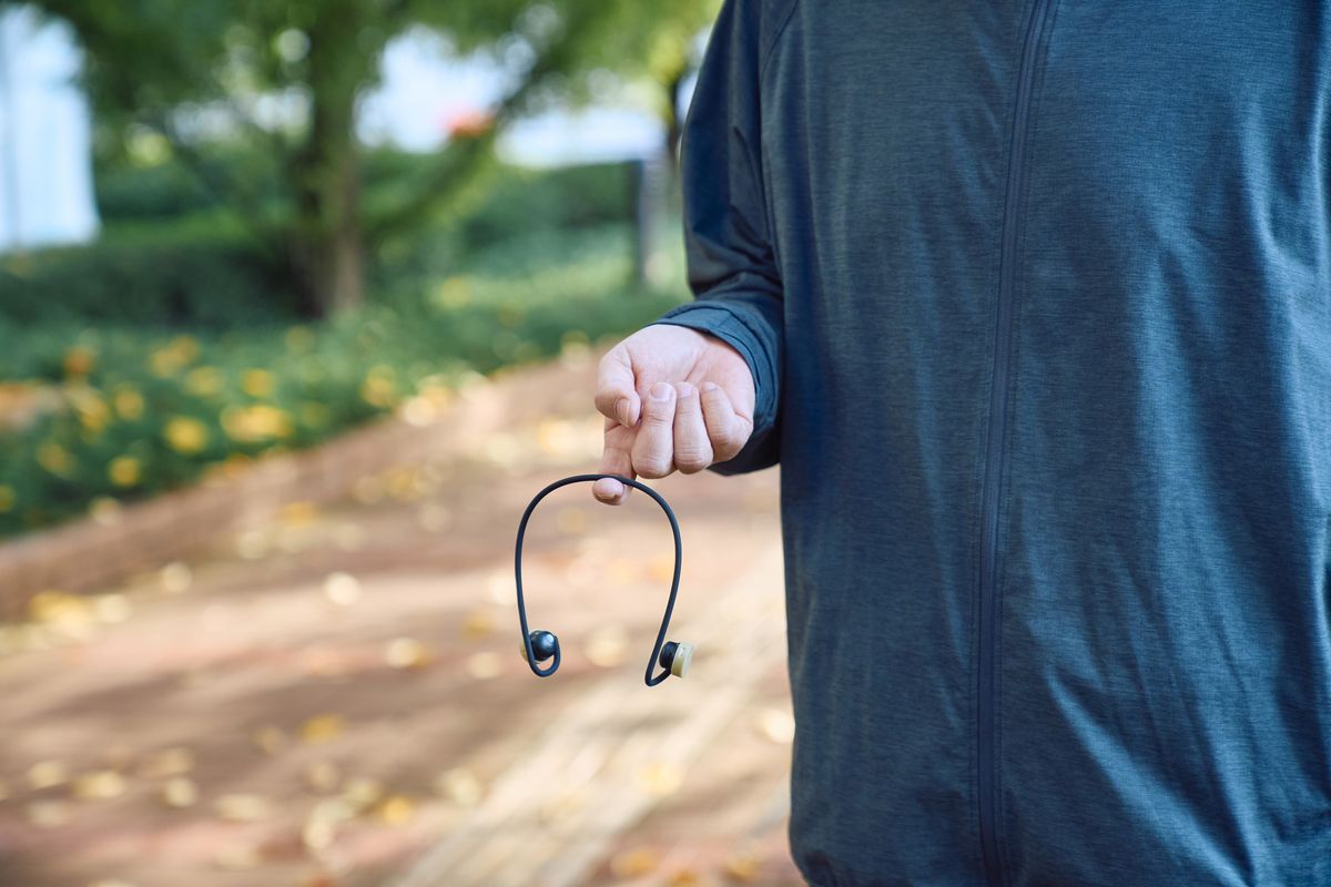 お気に入りの曲を流していると、本当に気持ちよく走れます。それに、周囲の音が聞こえるってのは安全面を考えると大事。そしてIP55の防塵防水性能があるから、突然の雨でも汗をかいても問題なし。寒くなってきてほぼ汗をかかなくなりましたが、夏なんかはダクダクになるので助かります。あとネックバンド型だから、汗をごしごし拭きたい時に、首にかけておけるのもいい。