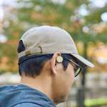 キャップをかぶっていても問題なし。ネックバンド部分が黒なので、目立たないのもうれしい。装着時の快適さは3モデルのなかでトップかも。さすがスポーツ向きだけはあります。
