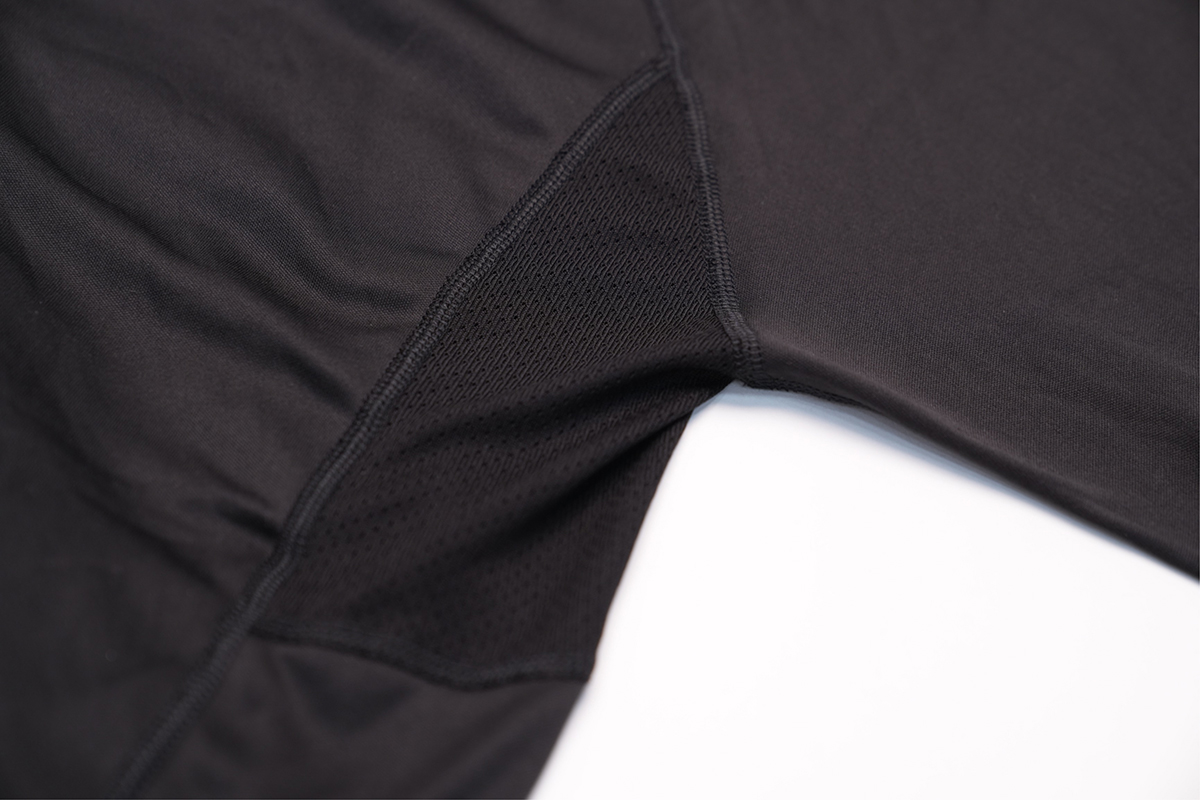▲脇部分には、汗の放出にひと役買うメッシュ素材を採用している