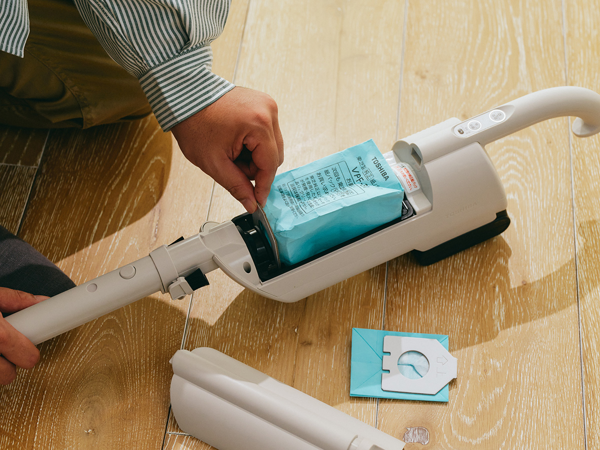 山口曰く、「毎回紙パックを交換するときなどにゴミを触らなきゃいけないのがストレスだった」そう。その点、「トルネオコードレス VC-CLP54」はノーストレスで使用できるところが真っ先に気に入ったポイントのようです。「直接ゴミに触れなくて済むし、何より大容量の『ふくらむパック』は普通に使っていて約3か月もゴミ捨てがいらないのが良い(※1)! ズボラなのにきれい好きではあるので、この紙パックは嬉しいですね」