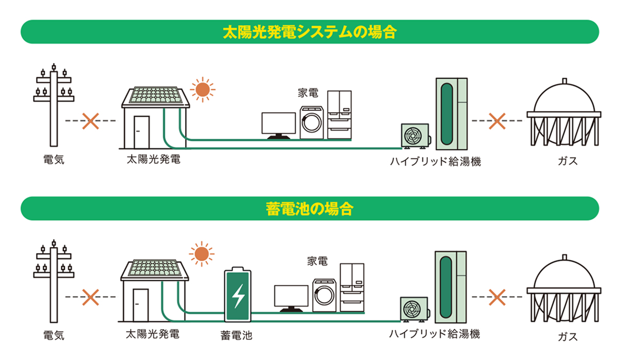 蓄電池や発電機との接続で停電時でもお湯を作れる