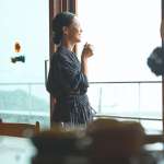 海を眺めながら過ごすティータイムは、慌ただしい生活を整えるための大切な時間。オーツミルクを入れたコーヒーや、疲れている時は漢方茶やヨモギ茶を飲むこともあるのだとか。