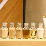 ▲築野食品工業が抽出した米ぬか由来の機能性成分の1つ、イノシトール(右から2番目の粉末)