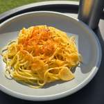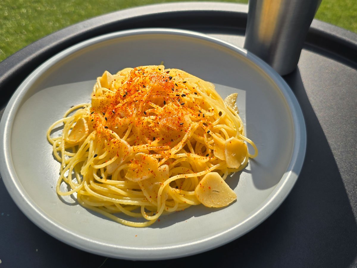 ■キャンプで作りたい! こめ油をスモークさせた「スモークオイルパスタ」が大好評