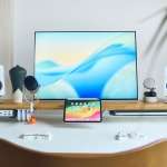 ▲デスクシェルフの高さにぴったりな28.2型のモニターはデザインが気に入って購入
