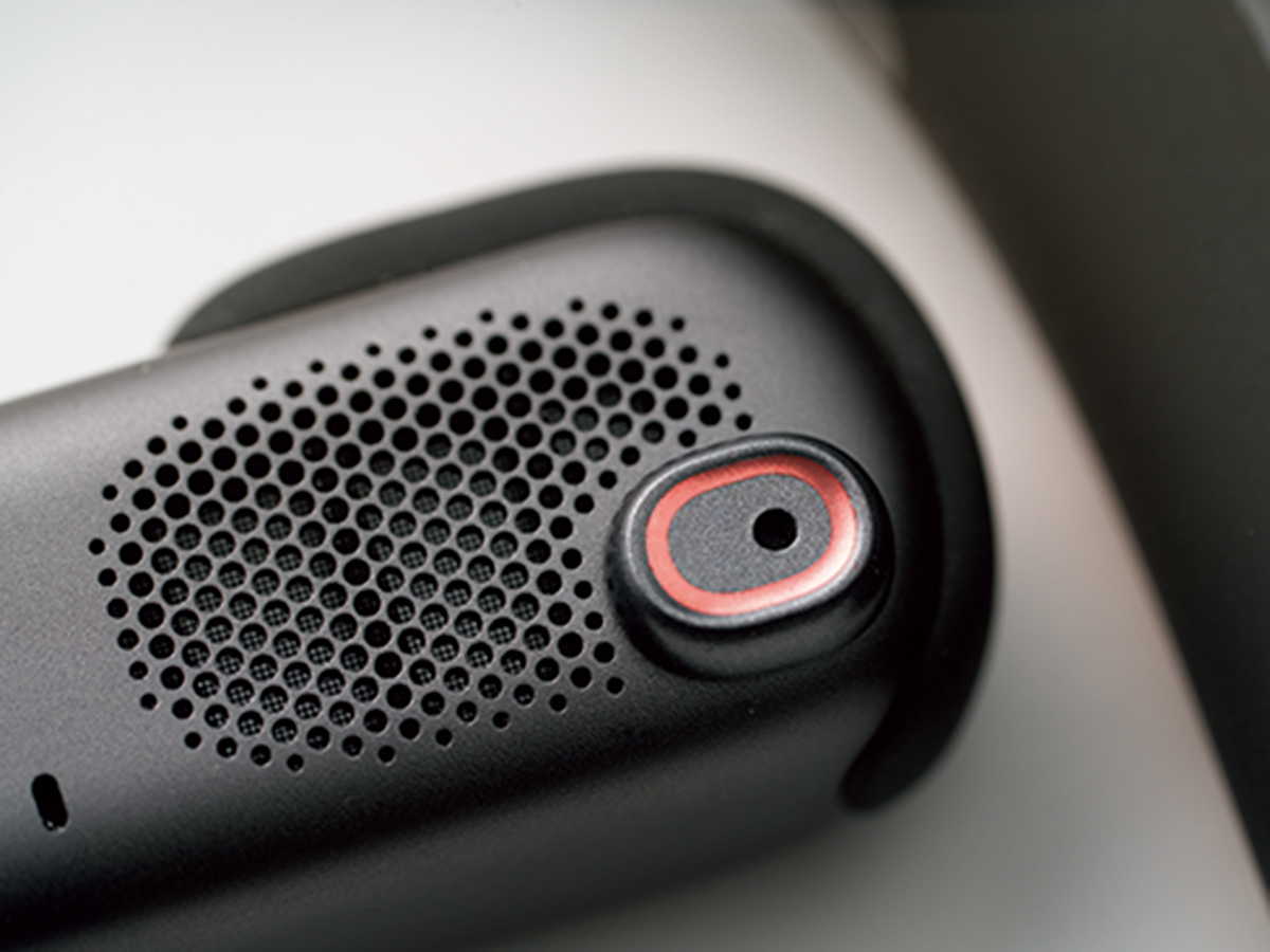 ▲ノイズリダクションリング付きハイプロファイルマイクが周囲のノイズを抑制し、聞き取りやすい音声通話を実現