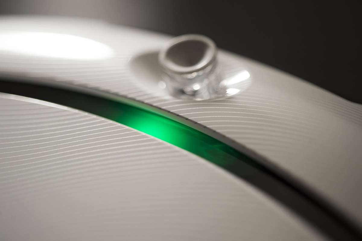 ルーロに感情移入する要因のひとつに“ハウスダスト発見センサー”を挙げる。「点灯色によって床の汚れ具合を知らせるのが本来の役割でしょうが、それがまるで感情を表しているように見えてとても愛着が湧きます」(赤点滅はハウスダストが多い時、きれいになったら緑点灯へ)