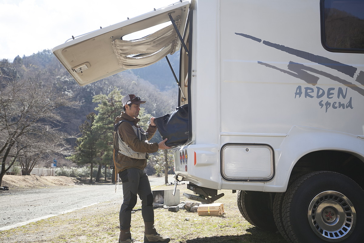 東京にも春の気配が漂い始めたある日。まだ日が昇り切る前に、以前から一度乗りたいと思っていた知人所有のキャンピングカーで自宅を出発。フライフィッシングが楽しめる、関東近郊のキャンプ場を目指す。標高400mの場所にあるキャンプ場は、初めて乗るキャンピングカーの走りを知るのにもちょうどいい。くねくねと続く道を、重さを感じながらも力強く進んでいった。