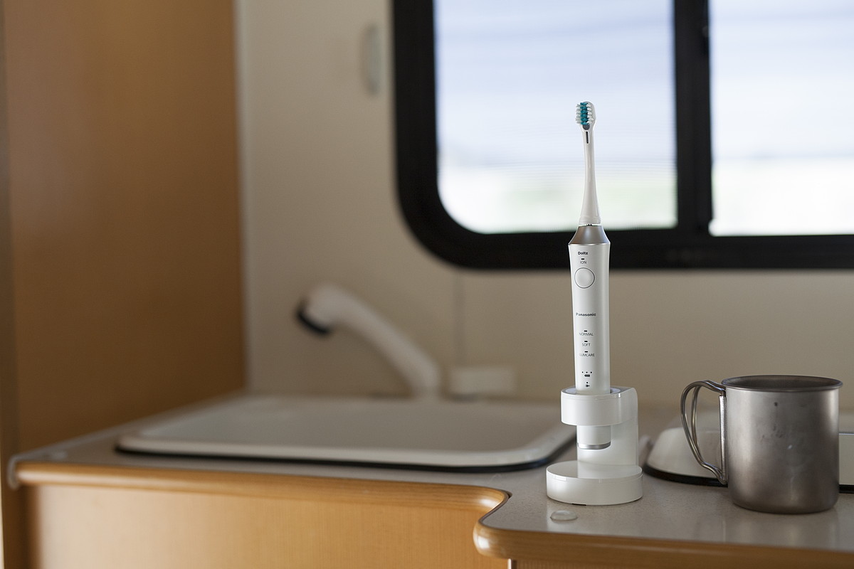 実は今年からアウトドアの道具のひとつとして加えたものがある。それがパナソニックの音波振動ハブラシ「ドルツ EW-DE55」だ。最近、知人に勧められて使ってみたら、その使った後の爽快感が病みつきになり、すっかり手放せなくなってしまった。フル充電しておけば1日2分使っても約1カ月は、余裕でバッテリーが持つ。そんなドルツは、キャンプでも問題なく使えるのかを試したかったのだ。
