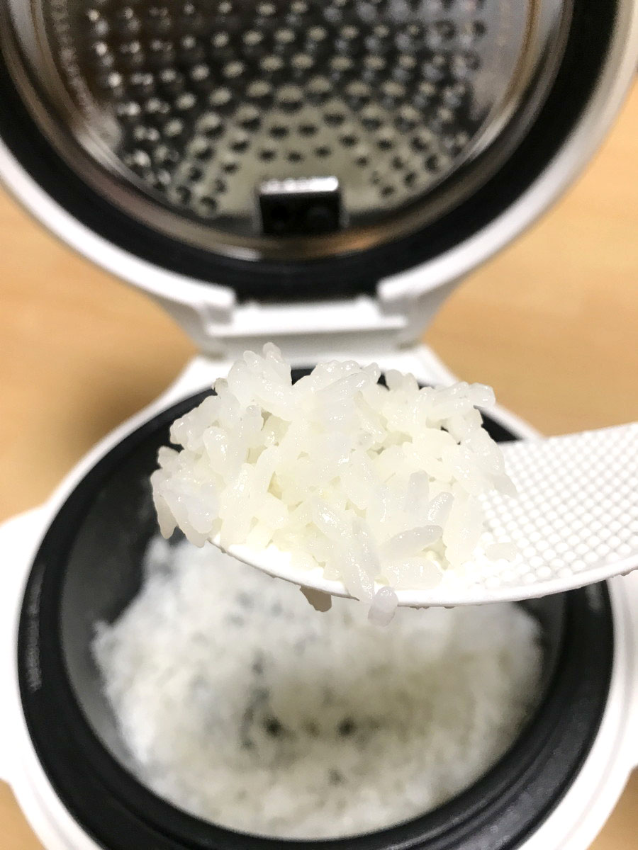 お米は柔らかめが好きなのですが、この硬さは許容範囲。常温で数時間置いたものも食べてみたのですが、炊きたてよりも少しさっぱりした味だったものの、パサパサ感はほとんど感じられず美味しくいただけました。これにもちょっと感動。