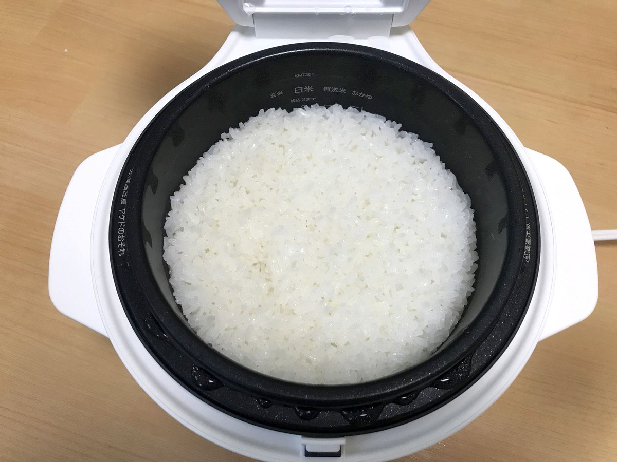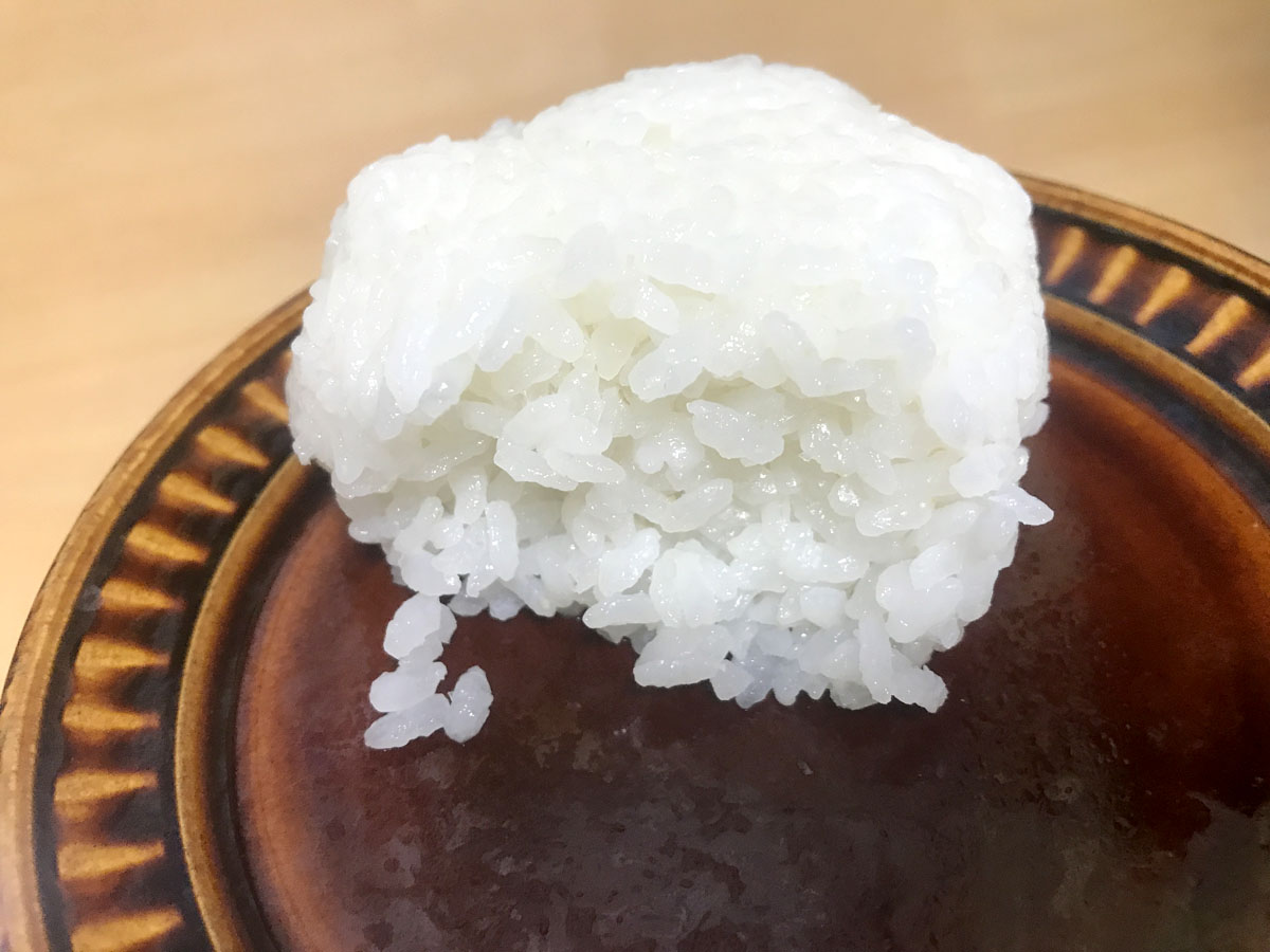 炊飯開始から待つこと約1時間、とうとう炊けました。待ちきれないのでしゃもじですくってつまみ食いしてしまいました。ふぉぉ! これはたしかに感動するほどおいしい。味付けせずに食べたのですが、口に入れた瞬間にお米の甘みが口いっぱいに広がって、噛むと甘みが出てきます。決してパサパサしていません。“硬め”という話も聞いていましたが、硬いというよりも、米一粒ずつが口の中でしっかりわかるという感じ。口に含みながら、こんなにも米“粒”を食べている感覚があるごはんは初めてでした。