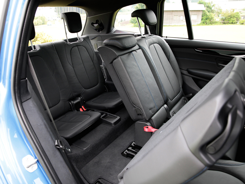 さて、欧州車のピープルムーバー(ミニバン)というと、かつてはその名のとおり“人員輸送車”といった趣きのクルマばかりでした。2シリーズ グランツアラーも、がっしりとした作りのシートを見るとその面影がありますが、一方で、荷室のスイッチひとつで畳める上に多彩なバリエーションを誇る3分割のセカンドシート、そこかしこに設けられたモノ入れやカップホルダーなどを見ると、ユーティリティの面で上を行く国産ミニバンを、子細に観察して作られたクルマであることがうかがえます。