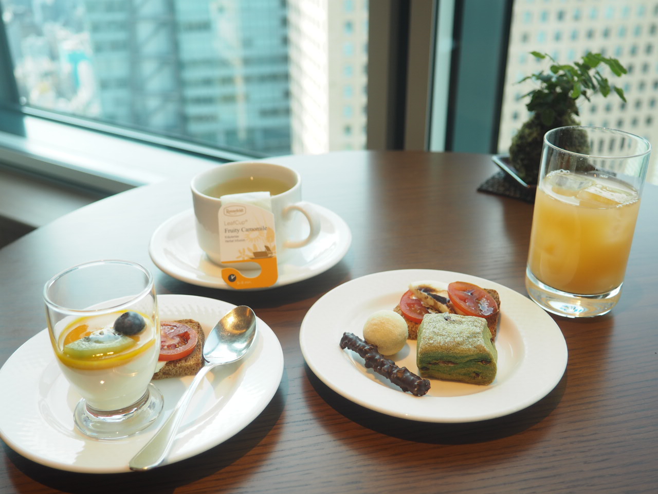こちらでは15時から17時の間、ドリンクとスイーツ、軽食が提供されています。コンラッド東京のスイーツはクッキーやミニケーキ、ポップコーンなどのほか、海外からのゲストも意識して、おかきなんて意外なものもありました。