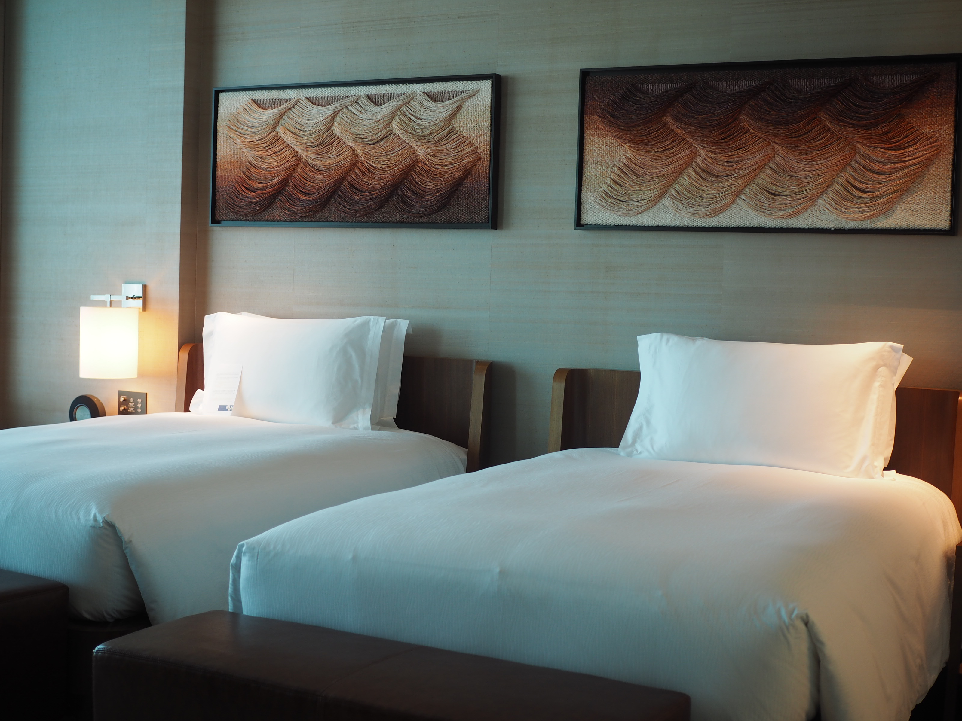 ちなみに、宿泊者はプールやジムなどの施設も利用できますが、早めの時間がおすすめ。夜の遅い時間や早朝はビジネスユースで宿泊している人が利用するため、混んでいる場合があります。また、お酒を飲んでの運動は危険なので、泳ぎたい人はお早めに。