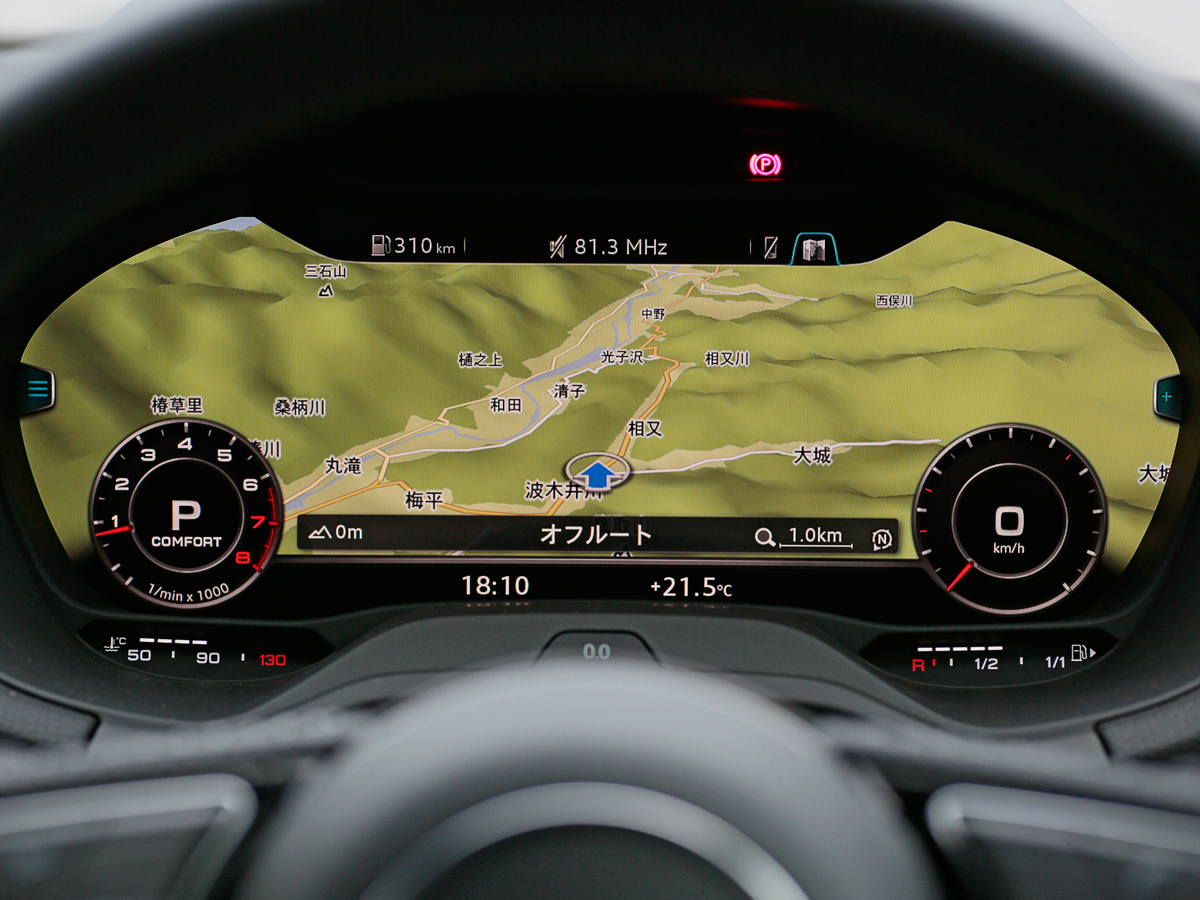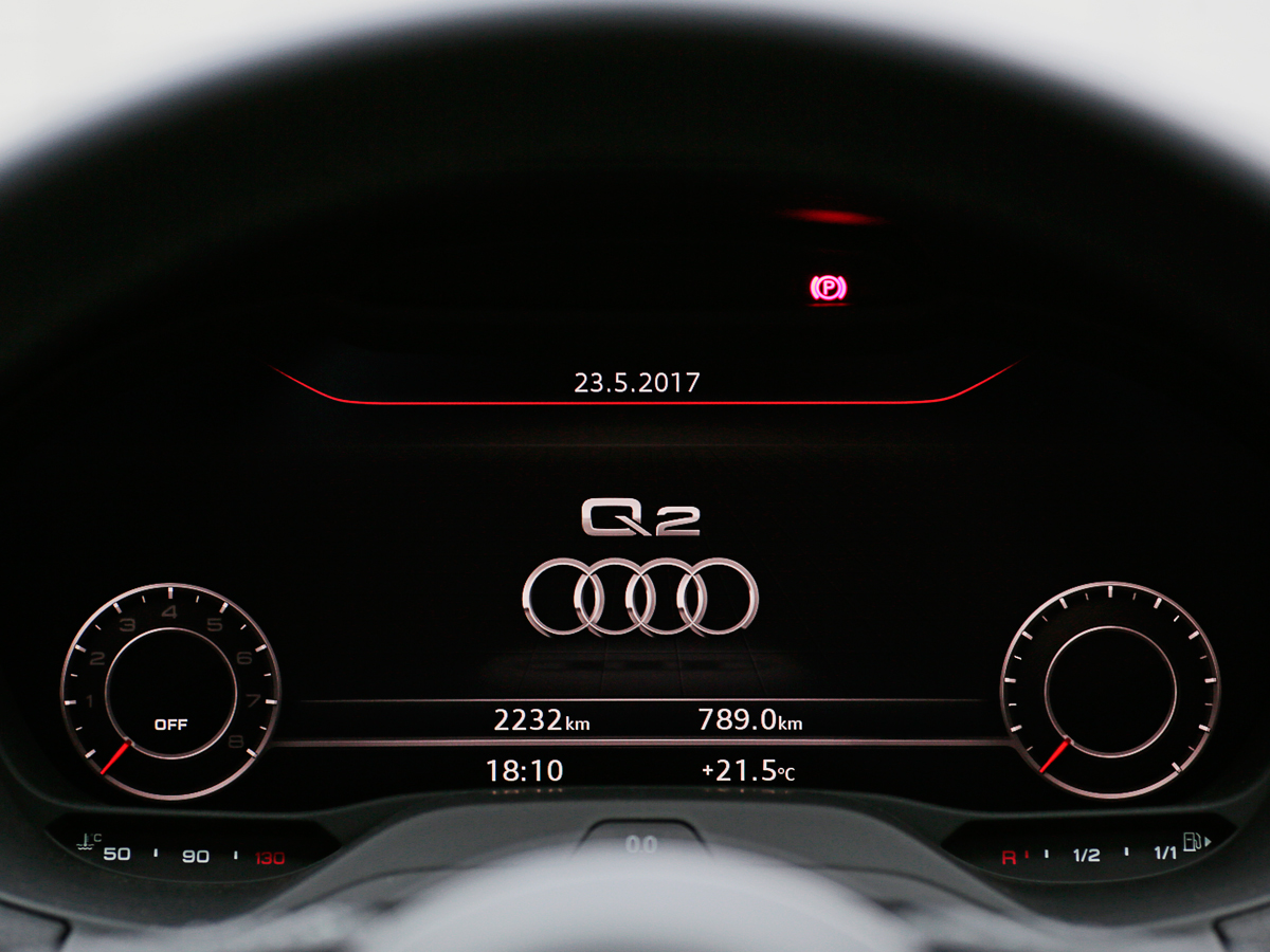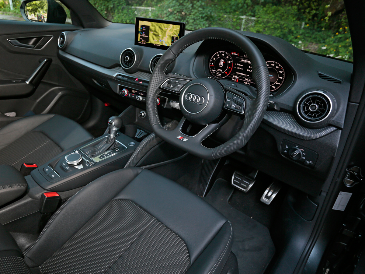 ドアを開ければ、黒とシルバーのクールな室内。メーターナセルの中が全面液晶になった“アウディ バーチャルコクピット”は、コレなしのQ2がイメージできないほど“マスト”の装備です。ナビ画面なども表示できて、便利至極。5万円のオプションにする必要があるんでしょうか?