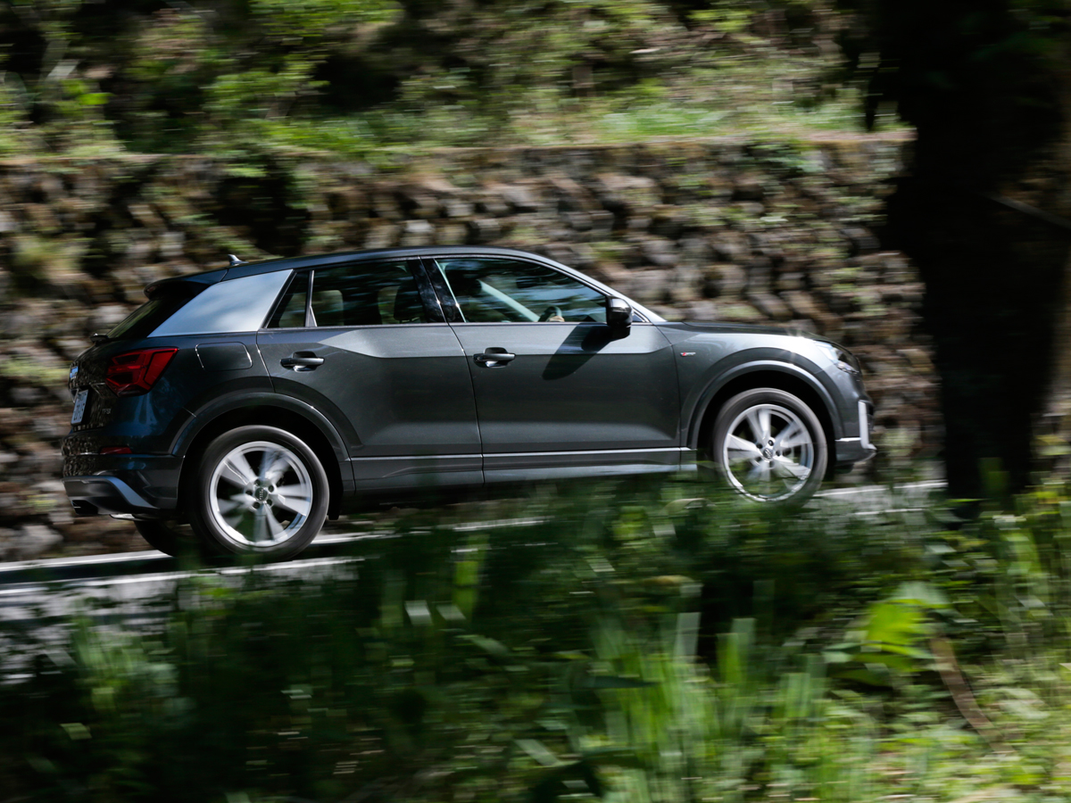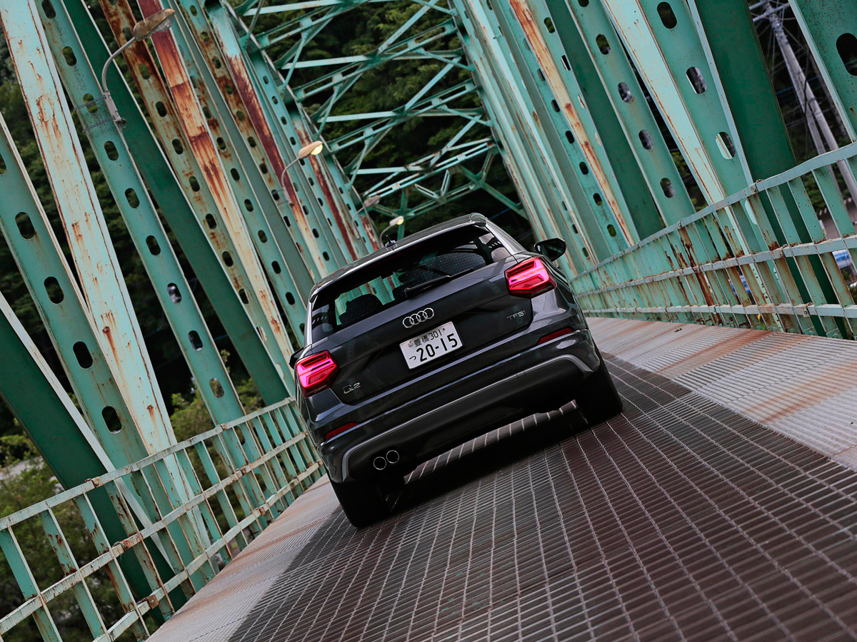 そんな皮肉な視点をとおしても、ブランニューのQ2は、なかなか魅力的なスタイルです。絶対的にコンパクトなので、デザイン要素がギュッと詰まった凝縮感が強い。“ブレード”と呼ばれる、Cピラーに貼られたプレートが目を引きますが、むしろ窓枠下端から下の一帯、ショルダー部分が、あたかもヘラでへずったように平らになっているのが、デザイン上の隠れたハイライト。シャープなエッジが、高級感を醸します。