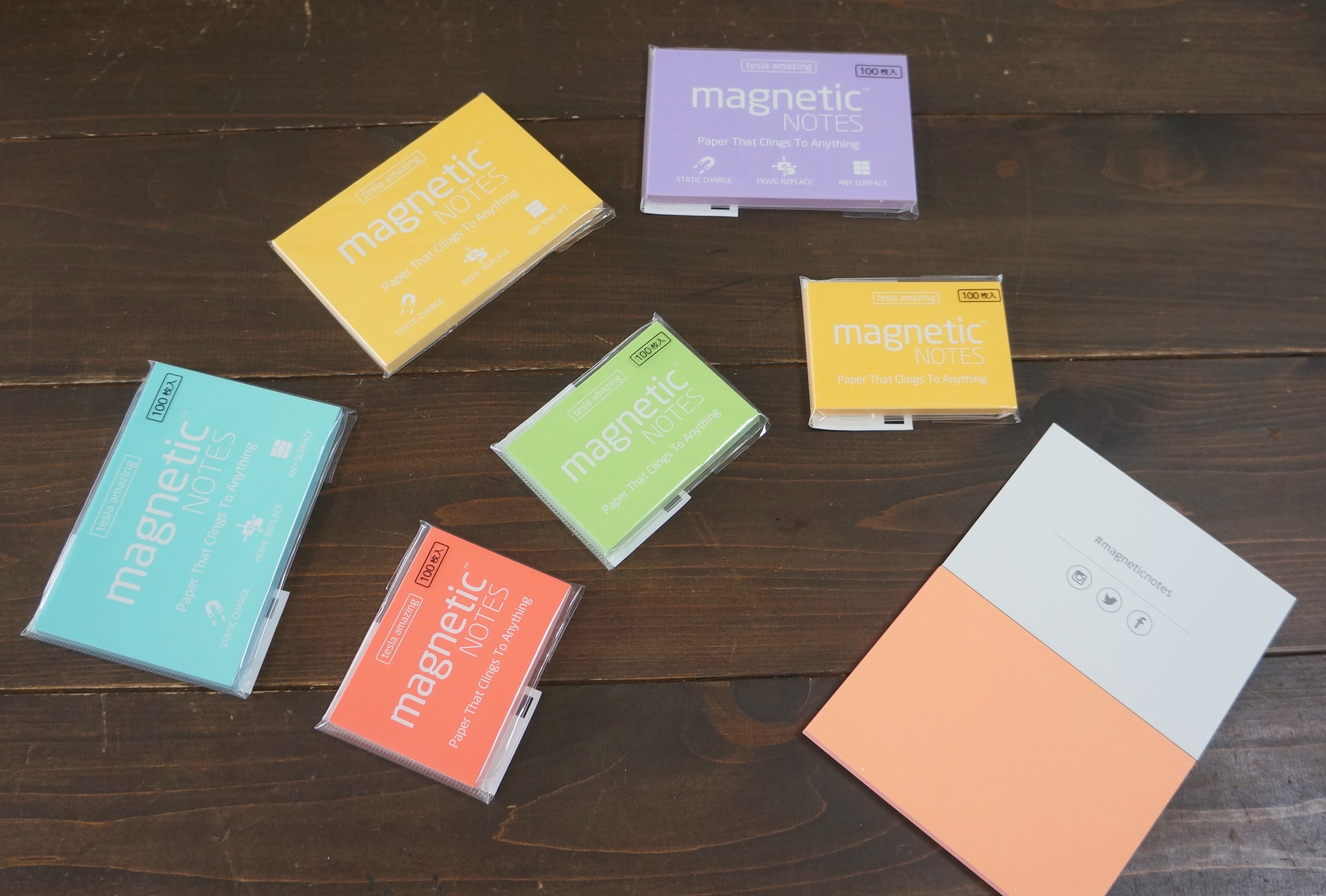 「マグネティックノート」とは、静電気を利用することで壁や窓、ドアなどに貼り付けられるふせんです。貼った場所次第では数か月程度吸着させることが可能。一般的なふせんのように、糊の吸着力が弱ってはがれ落ちることが少ないのが特徴のひとつです。