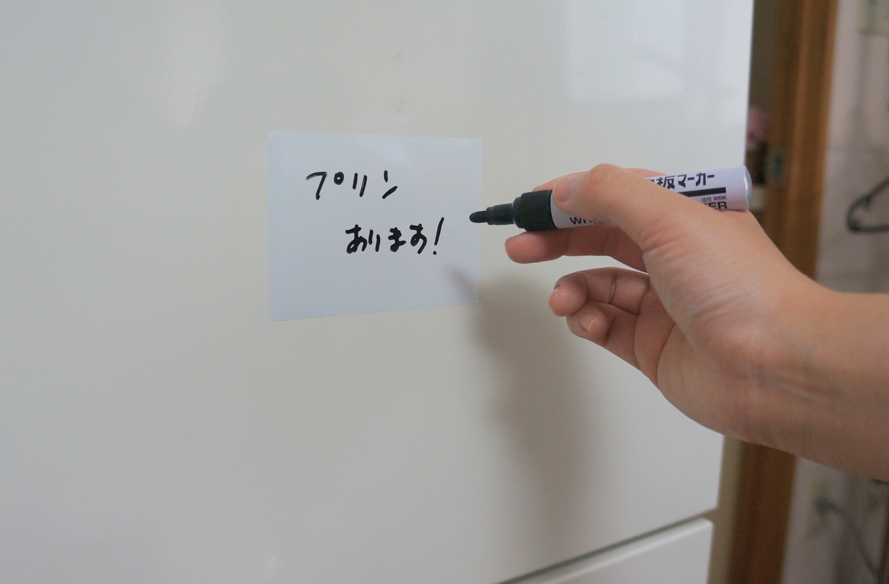 ▲「マグネティックノート」の裏面が“表”になるように貼り付け、ホワイトボード用のペンで書き込む